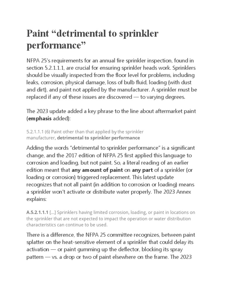 So, how does this relate to NFPA 25 changes? The 2023 edition now says