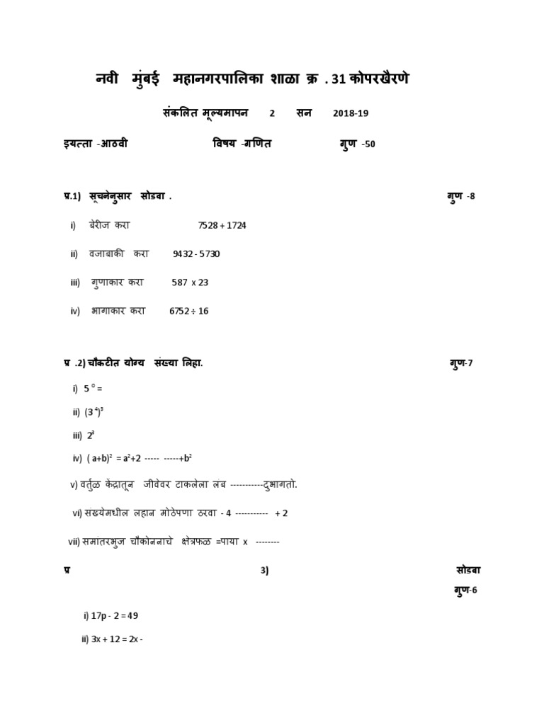प्र.1) सूचनेनुसार सोडवा . गुण -8