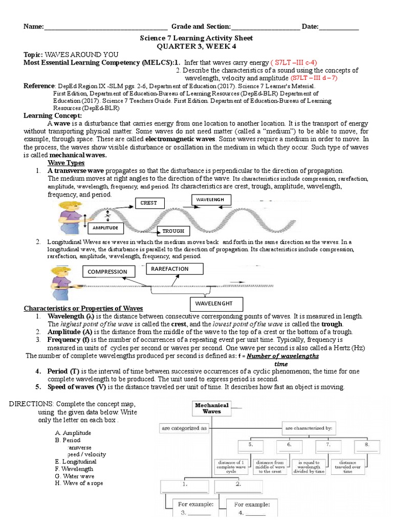 wavelength, velocity and amplitude (S7LT – III d – 7)