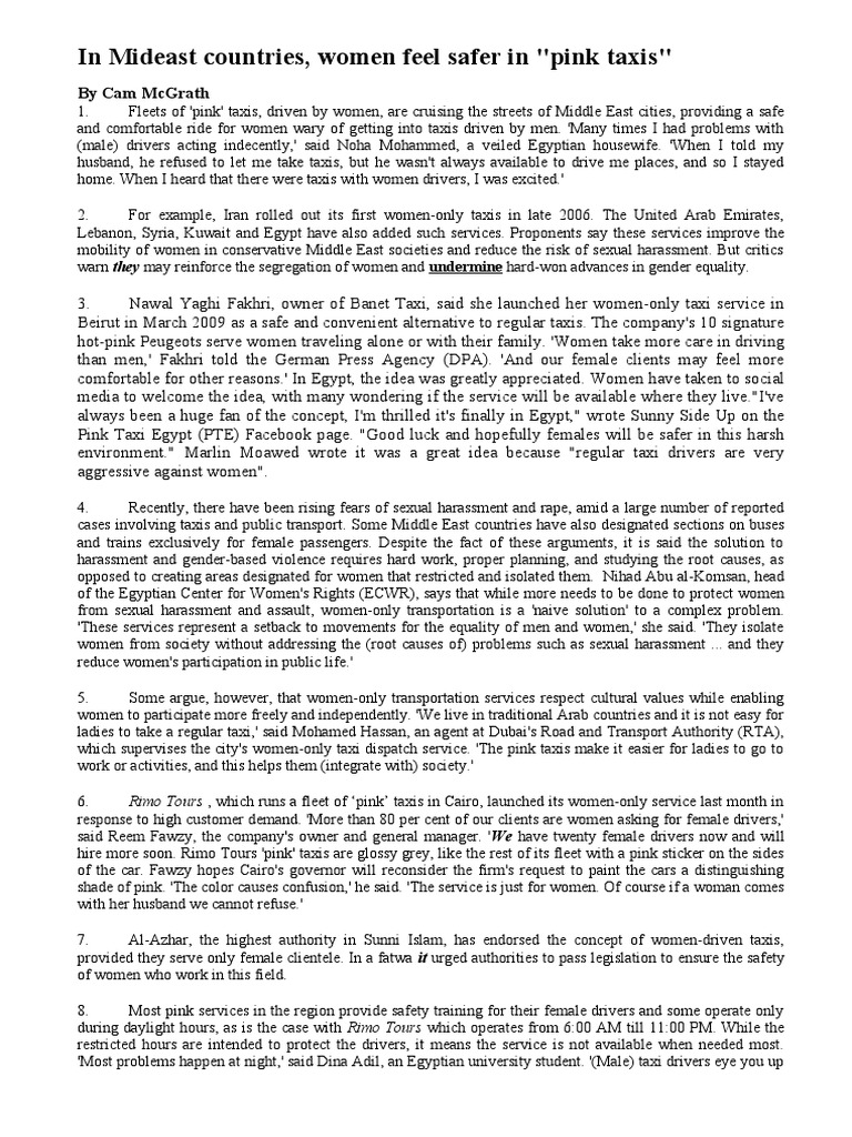 1. Fleets of 'pink' taxis, driven by women, are cruising the streets of Middle East cities, providing a safe