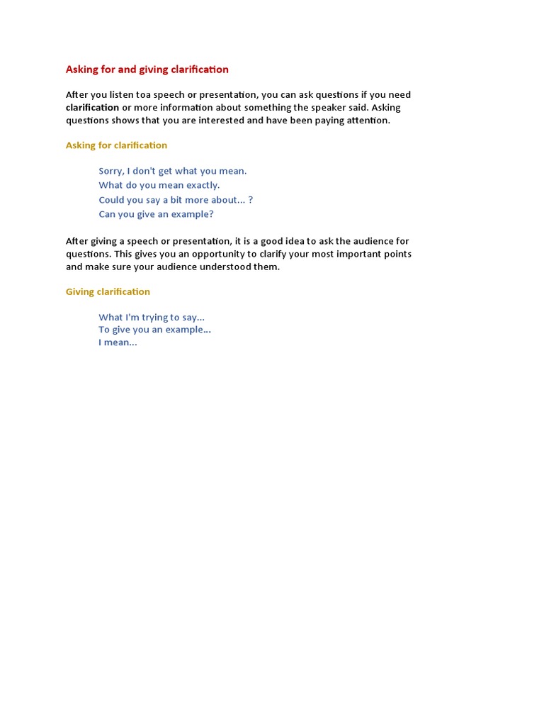 Asking for and giving clarification