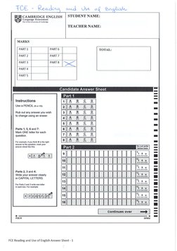 FE Reading and Use of English AnswerSheat 1si =a =a] =] =a] =a .