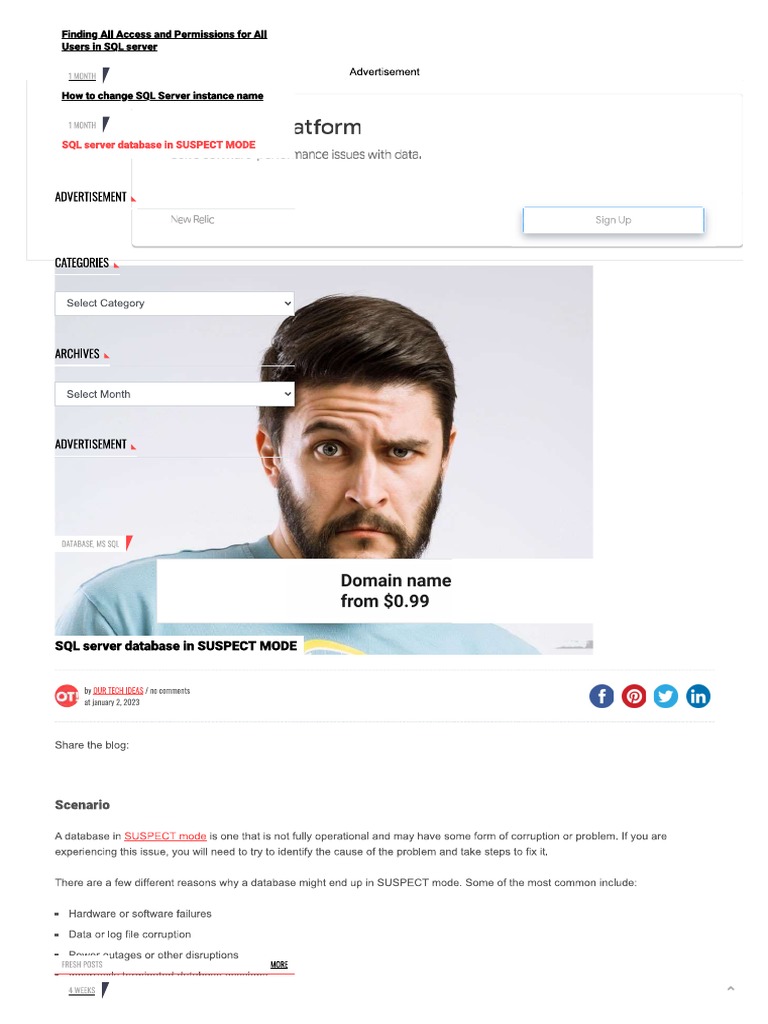 ‘A database in SUSPECT made is one that isnot fully operational and may have some form of corruption ar problem, If you are