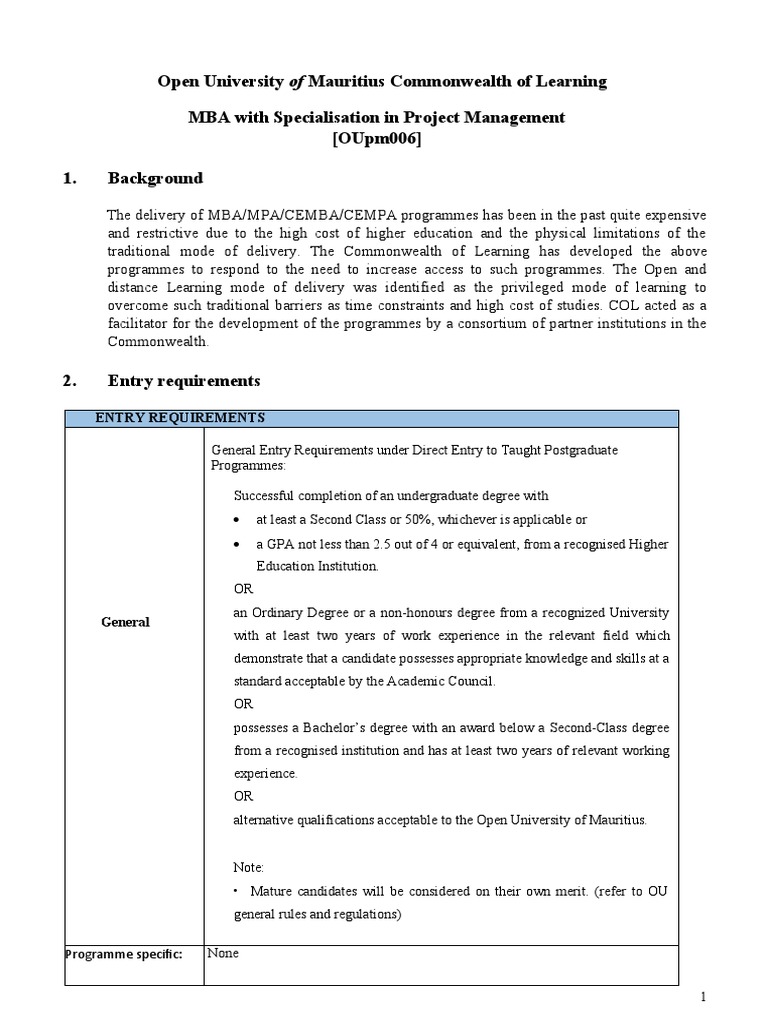 The MBA with Specialisation in Project Management programme provides a blend of