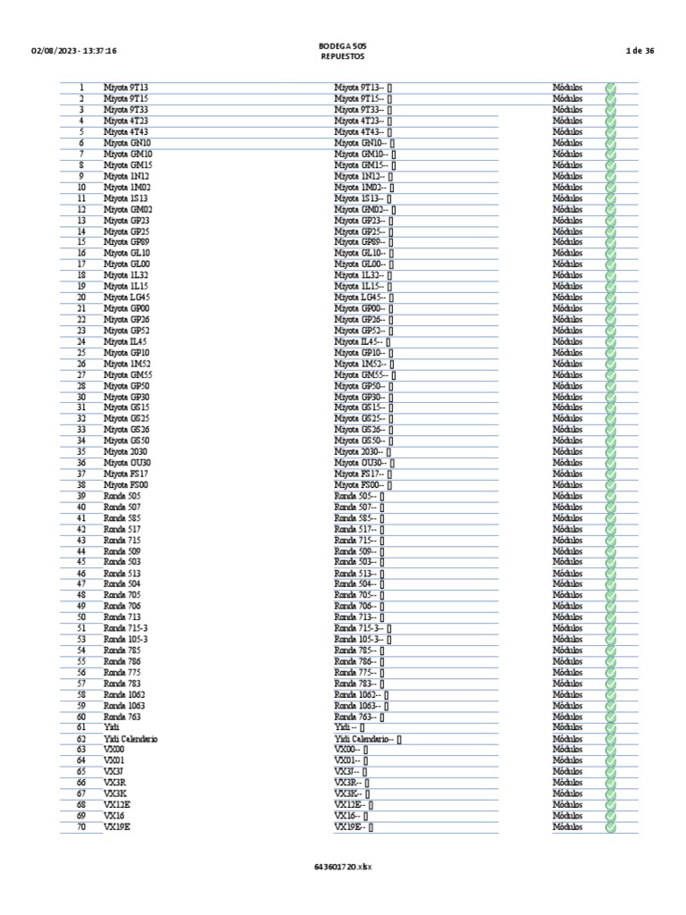 10/25/2021 13 Miyota GP23-- [] Módulos 0 0 0 0 1