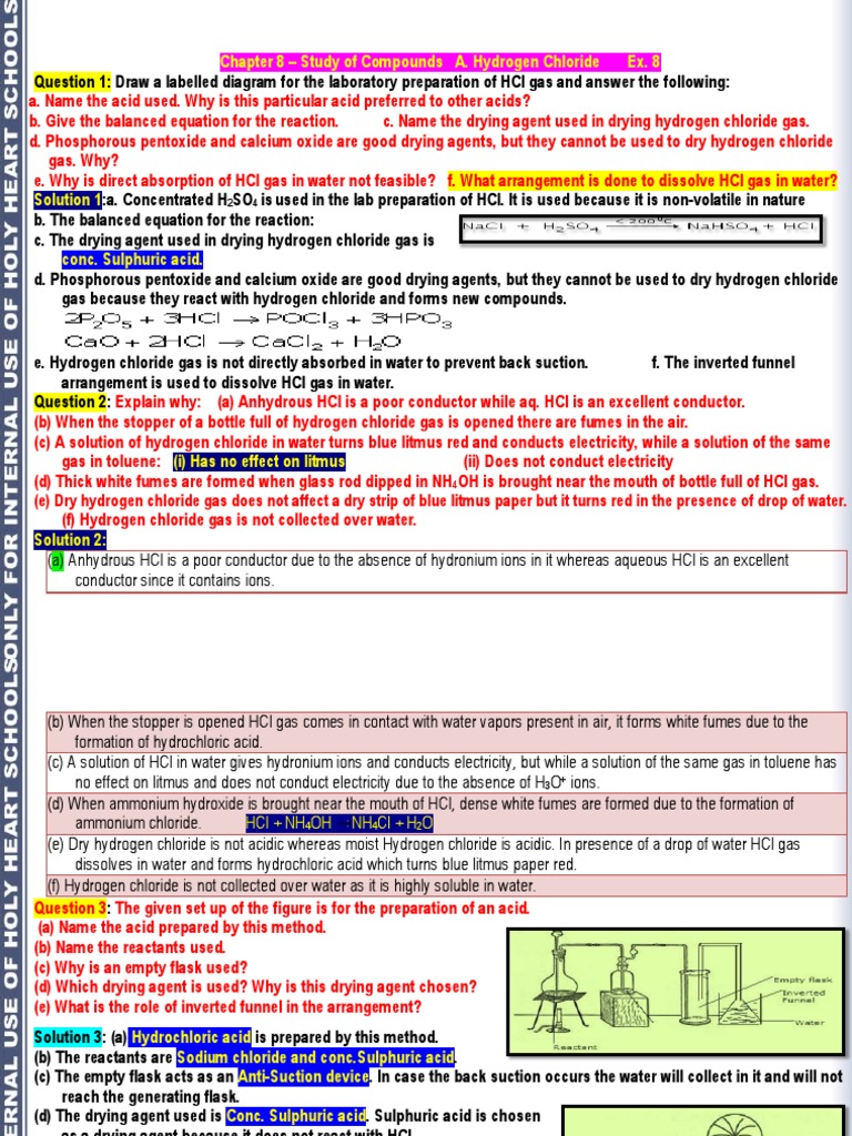 Solution 1:a. Concentrated H2SO4 is used in the lab preparation of HCl. It is used because it is non-volatile in nature
