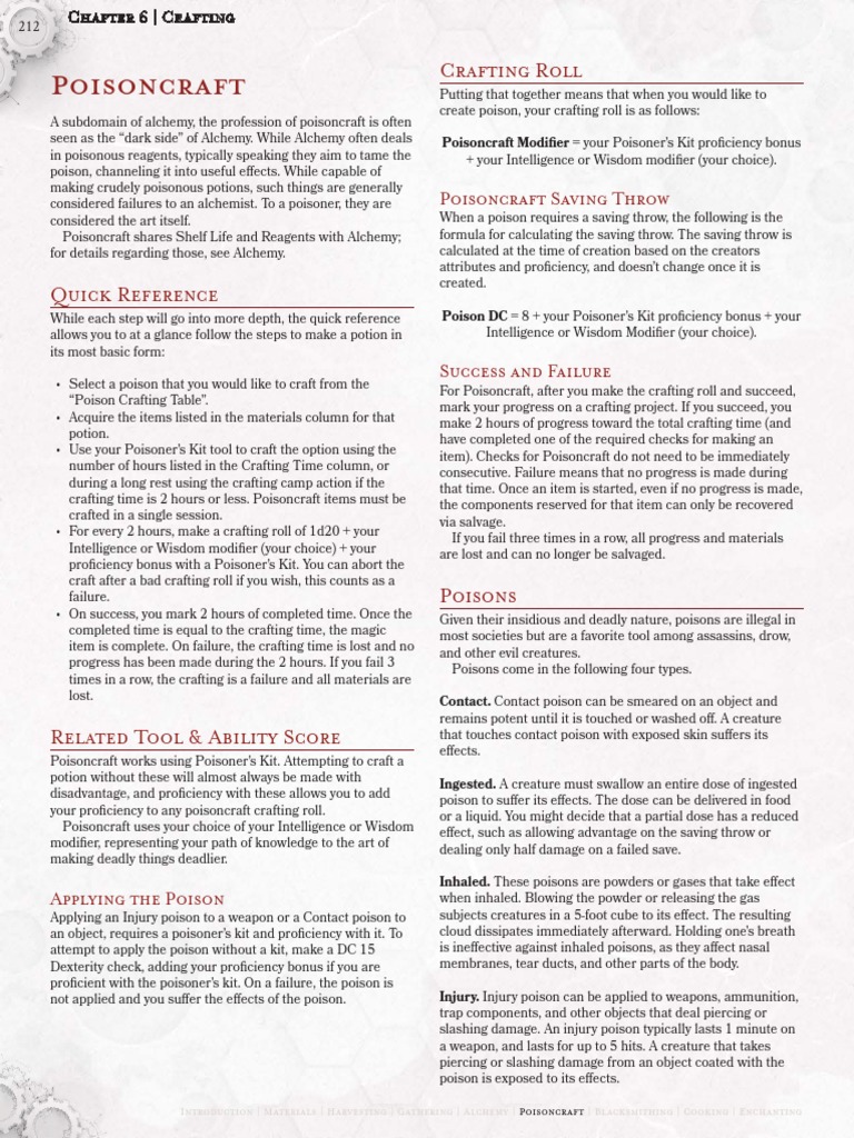 seen as the “dark side” of Alchemy. While Alchemy often deals Poisoncraft Modifier = your Poisoner’s Kit proficiency bonus