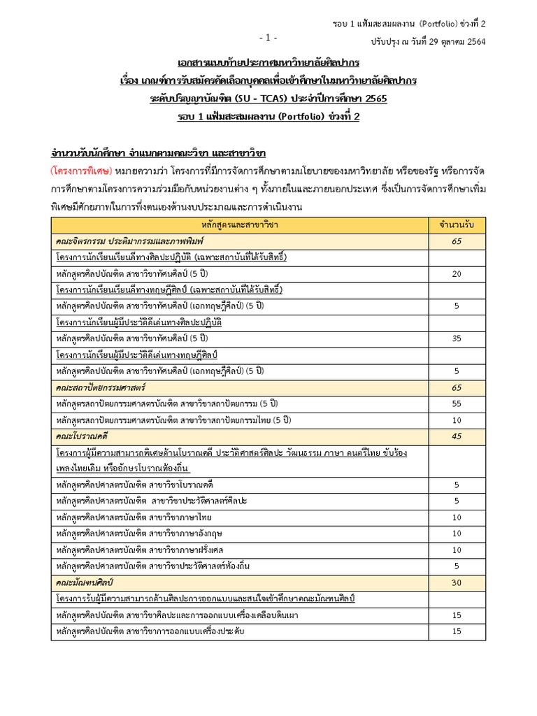 สอบสั ม ภาษณ์ วั น ที ่ 22 มกราคม 2565 เวลา 09.00 น. เป็ น ต้ น ไป ณ คณะจิ ต รกรรม