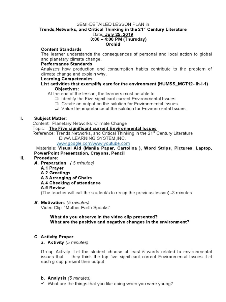 SEMI-DETAILED LESSON PLAN in