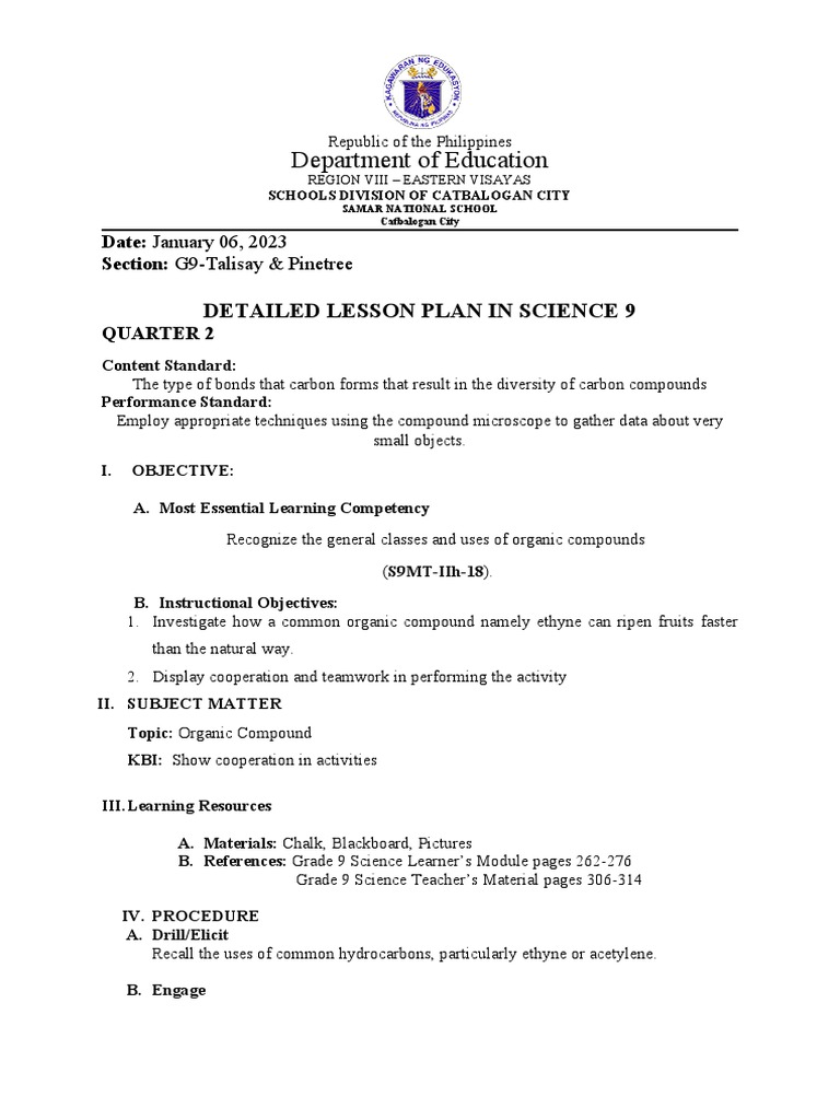 DETAILED LESSON PLAN IN SCIENCE 9