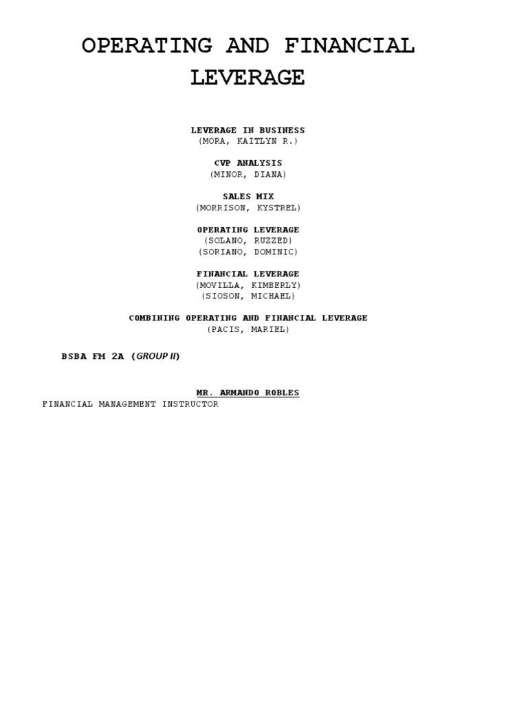 financial, and combined leverage.