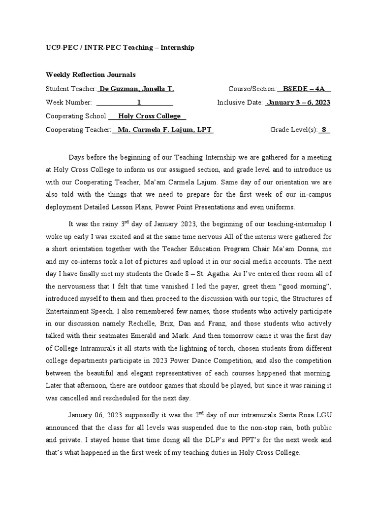 introduced to us. And that is what happened in the second week of my teaching internship.