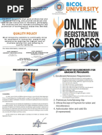 The document outlines the online enrollment procedure for a university's computerized registration system. The procedure involves a student confirming their subjects, an adviser validating the subjects, determining if the student has a scholarship, processing any assessment amounts due, the student paying at the bank if an amount is due, a cashier confirming payment, generating a Form5, and getting signatures of confirmation from the student and adviser to complete registration.
