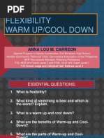 • Cooling down COOL DOWN is an easy exercise, done after a more intense activity, to allow the body to gradually