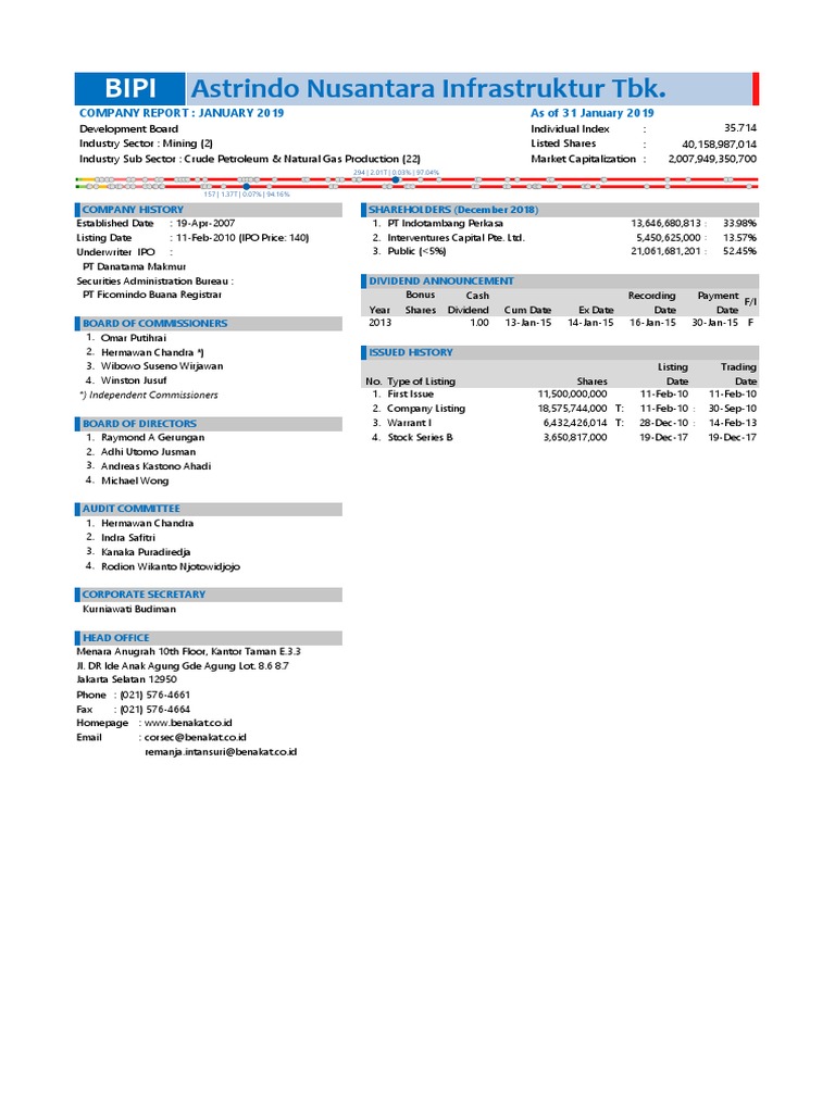 COMPANY REPORT : JANUARY 2019 As of 31 January 2019