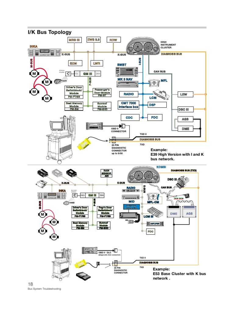 Control units that provide operating voltage to the I/K bus are: On E38 and E39/E53 High version vehicles: The LCM is the Master Controller of the I-bus. The IKE and MID/BMBT are Stand-by Controllers. The GM is the Master Controller of the K-bus.