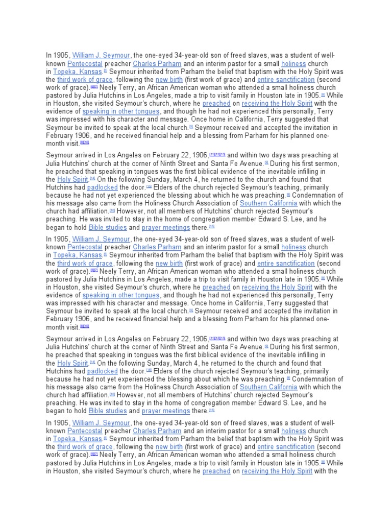 in Topeka, Kansas.[5] Seymour inherited from Parham the belief that baptism with the Holy Spirit was