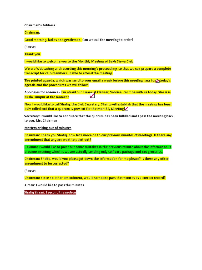 Chairman: Alright, can we move on to minutes of previous meeting. Anyone?