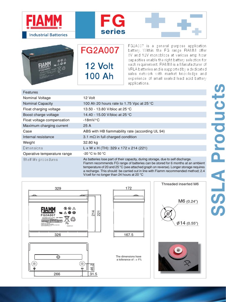 Fiamm recommends FG range of batteries can be stored for 6 months at an ambient