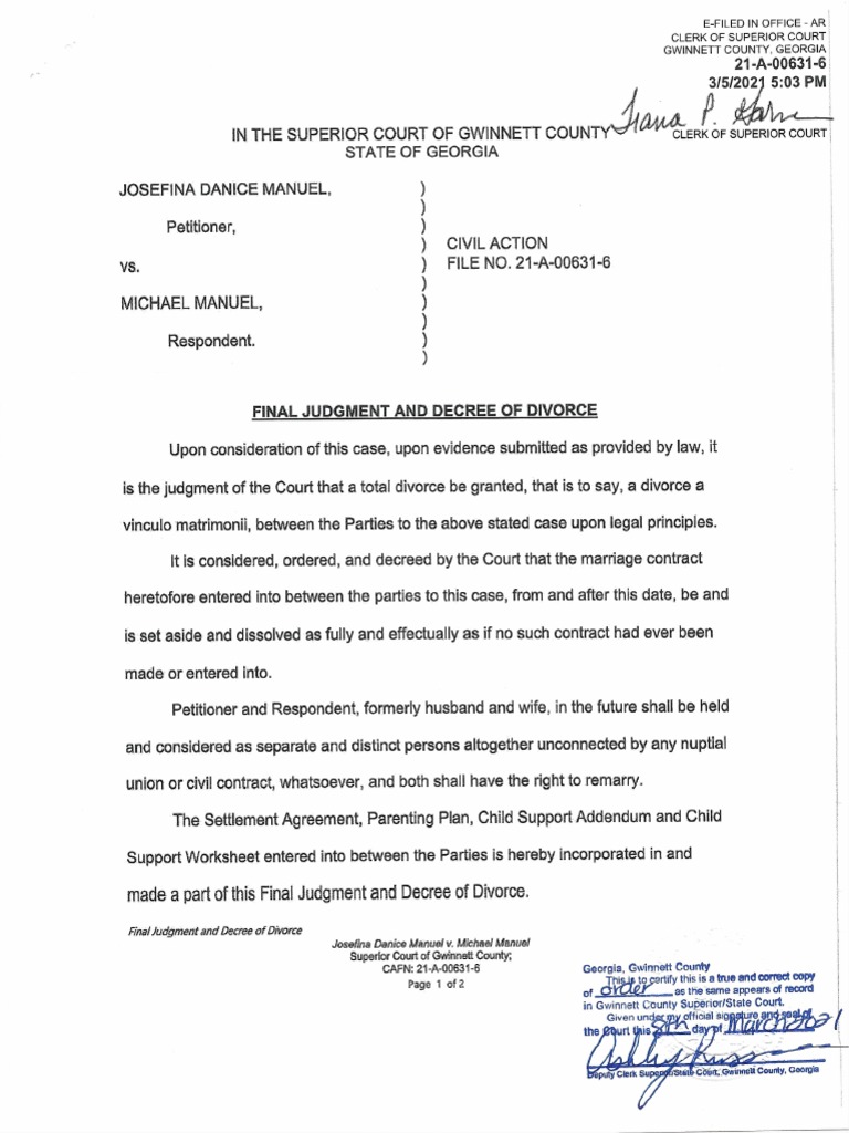 Final kudgment and Decree of Divorce