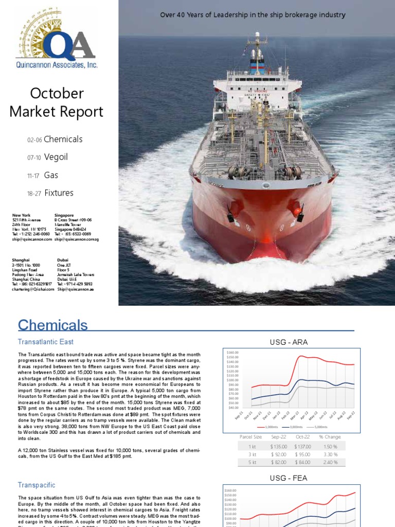 progressed. The rates went up by some 3 to 5 %. Styrene was the dominant cargo, $140.00
