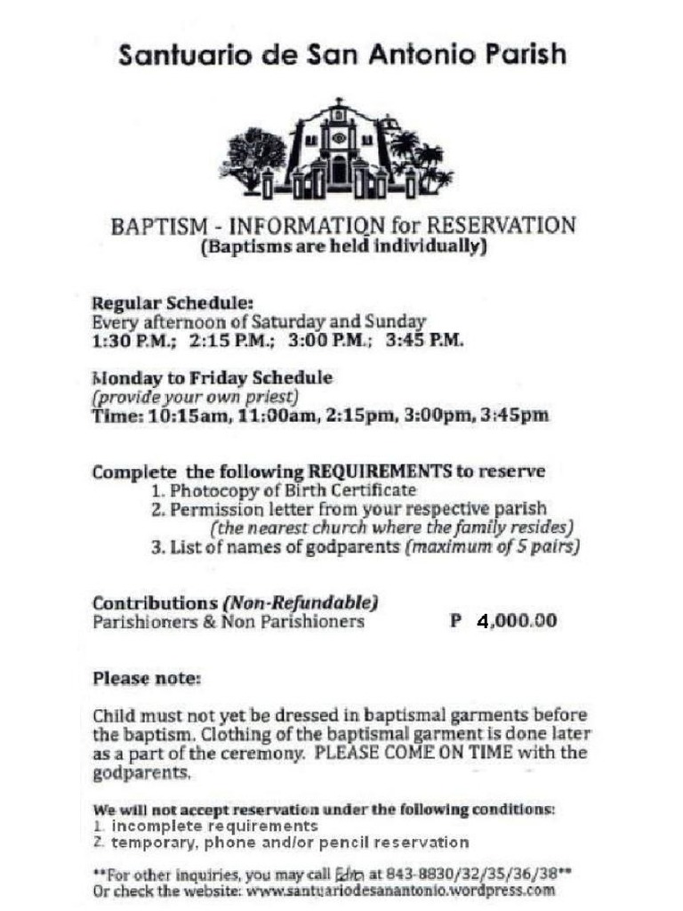 5. Scheduled baptism during Saturdays & Sundays must be offciates by SSAP priest on duty only. Guest priest can preside basically through