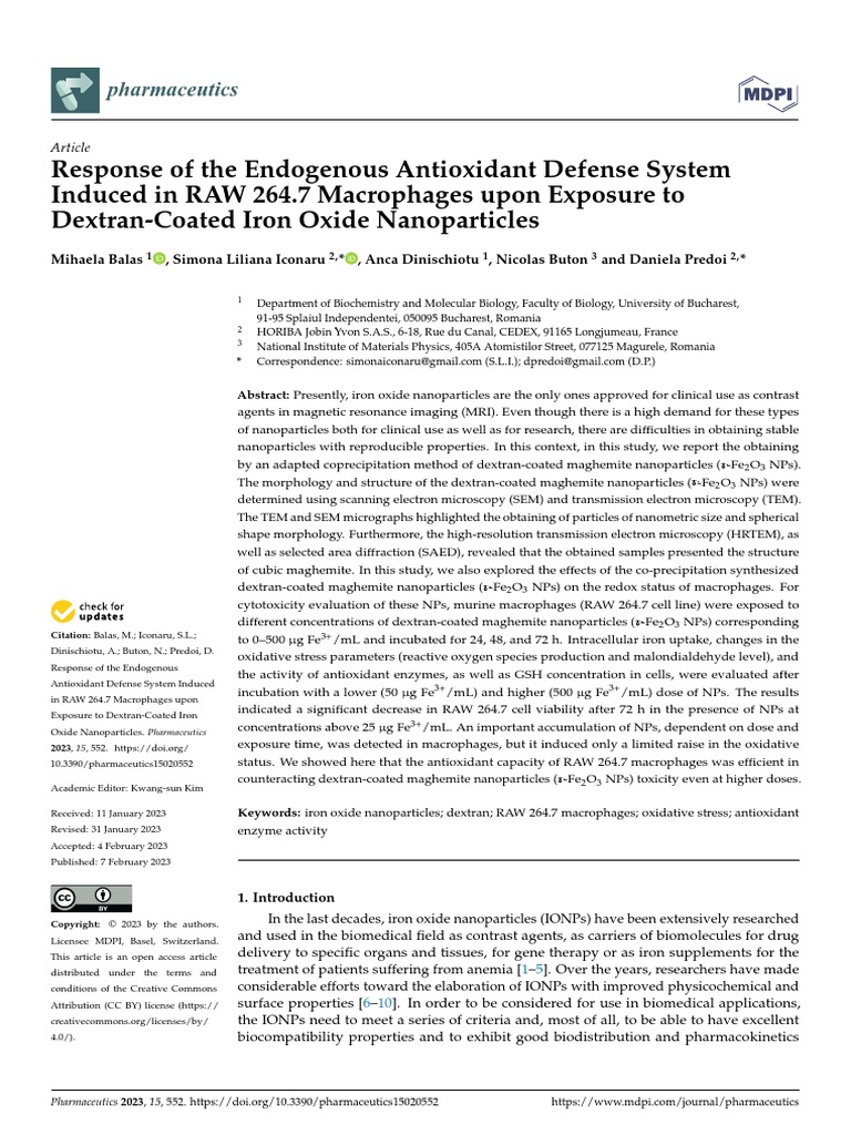 61. Easo, S.L.; Mohanan, P.V. Dextran stabilized iron oxide nanoparticles:synthesis, characterization and in vitro studies. Carbohydr