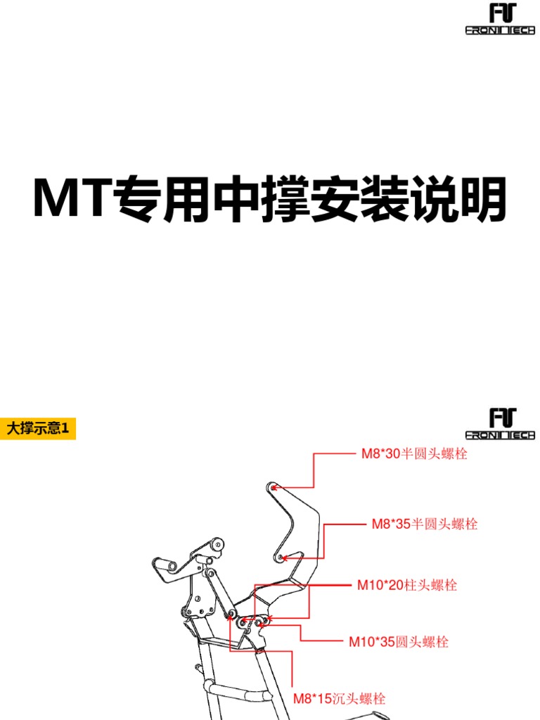 A3-左支架板*1 B2-M10*35圆头螺栓*2 B7-M8*15沉头螺栓*2 C3-8*30*10铝套筒*1