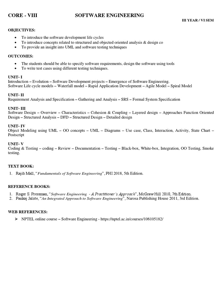 CORE - VIII SOFTWARE ENGINEERING