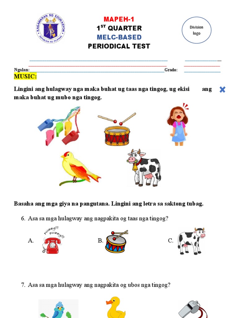 Direksyon: Paminaw sa maestra, samtang basahon ang mga pangutana. Isulat