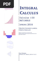 (usually using the simple power rule for integrals), the integral on the closed interval [ a , b] is equal to the difference in the anti-derivatives at each endpoint. x d Part 2: a f t dt = f x or F ' x= f x This states that the derivative of the anti-derivative is dx the original function. Be careful applying this, though. The example given takes the integral over [ a , x ] , but if x is a differentiable function, you must use the chain rule eventually.