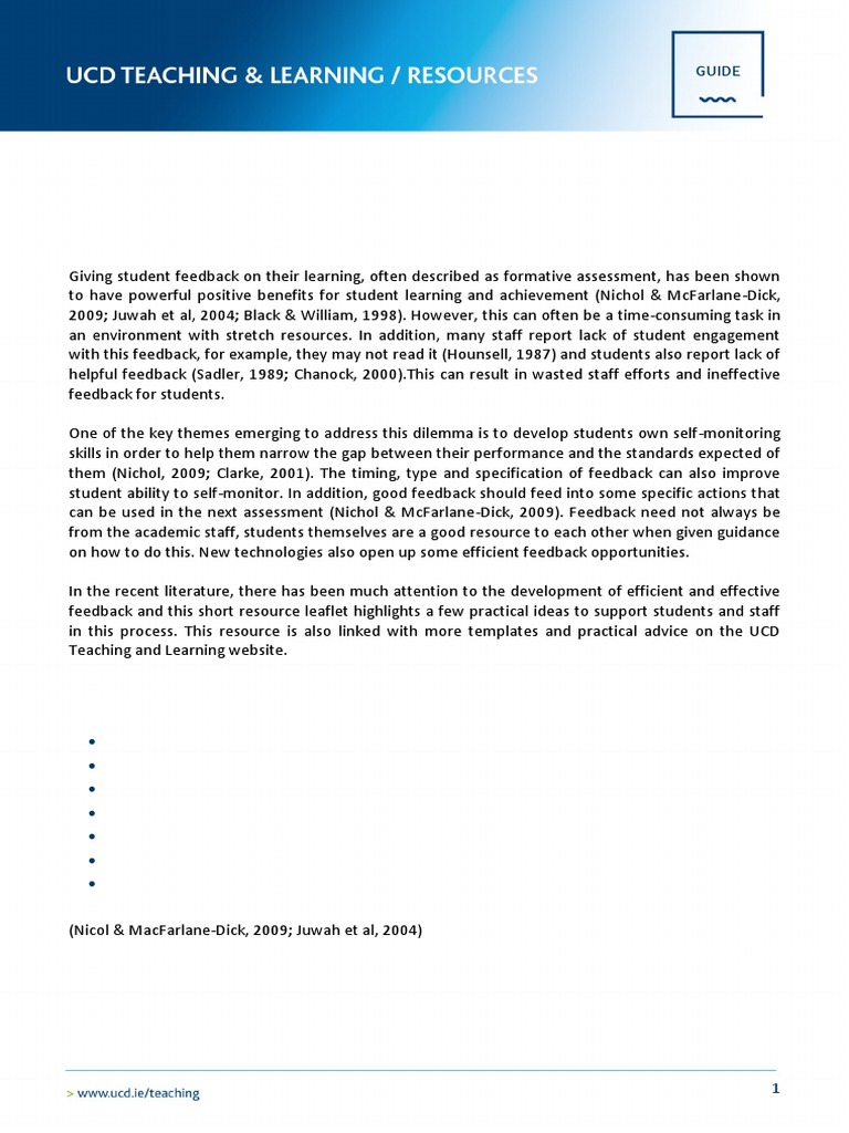 (Nicol & MacFarlane-Dick, 2009; Juwah et al, 2004)