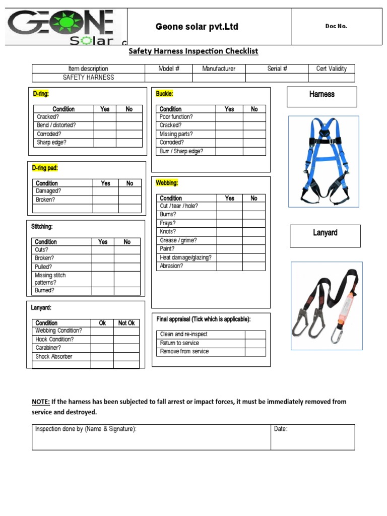 Safety Harness Inspection Checklist