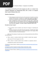Management (Non-debt Instruments) Rules, 2019 prior to transfer of shares and the