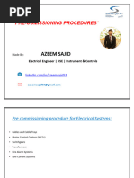 and electrical pre-commissioning and commissioning test / checks. It is not