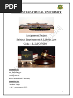 This document provides instructions for a group assignment for an Employment Law course. It lists the names and student numbers of 8 students assigned to complete the project. They are to prepare and submit their work to their lecturer by a specified date in a certain week.