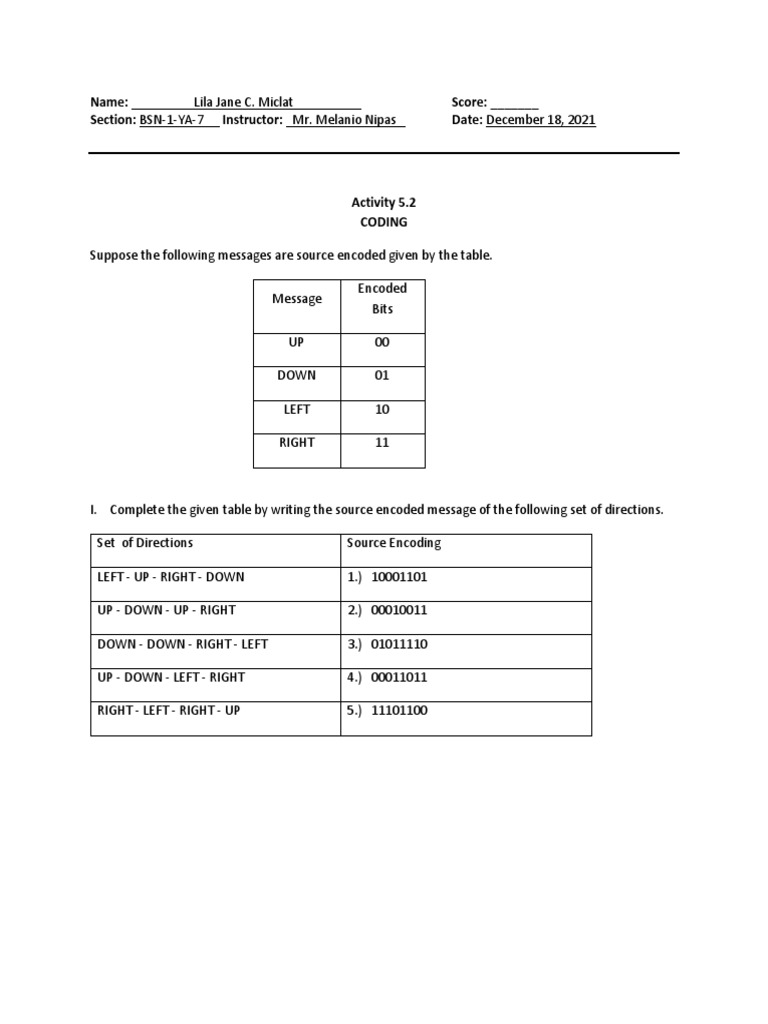 Section: BSN-1-YA-7 Instructor: Mr. Melanio Nipas Date: December 18, 2021