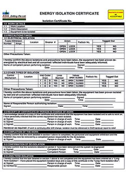 Ste ENERGY ISOLATION CERTIFICATE