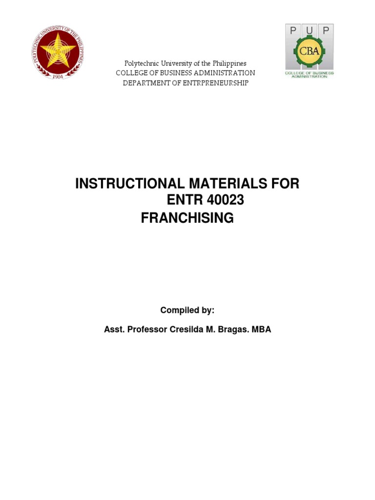 processes, but the course further discusses how individual can be an entrepreneur through franchising –