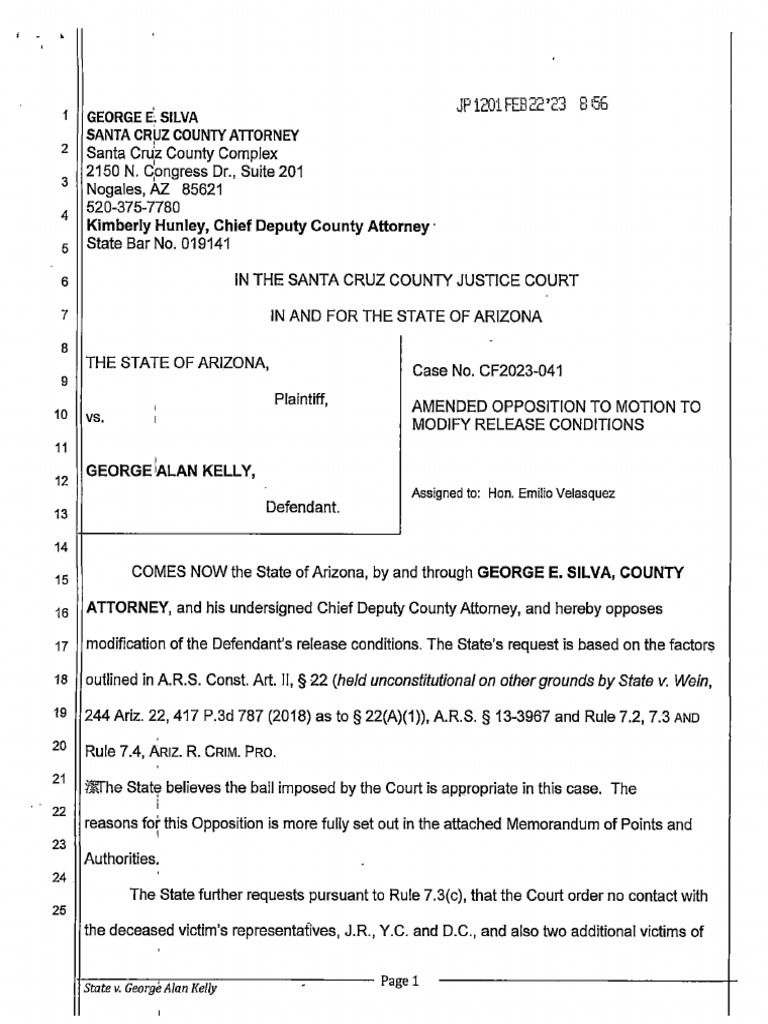 COMES NOW the State of Arizona, by and through GEORGE E. SILVA, COUNTY