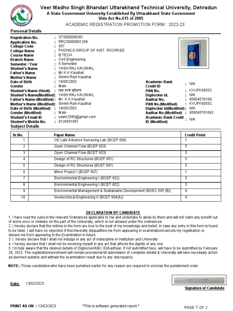 Date of Birth (Modified) : 18/05/2003 Digilocker Id(Modified) : N/A