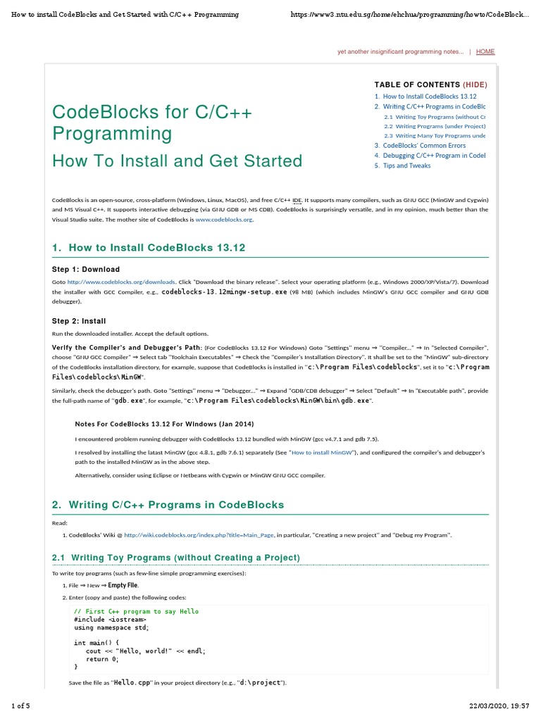 How to install CodeBlocks and Get Started with C/C++ Programming https://www3.ntu.edu.sg/home/ehchua/programming/howto/CodeBlock...