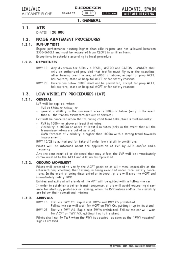 DCL departure procedures are applied at Alicante/Elche APT in the provision of