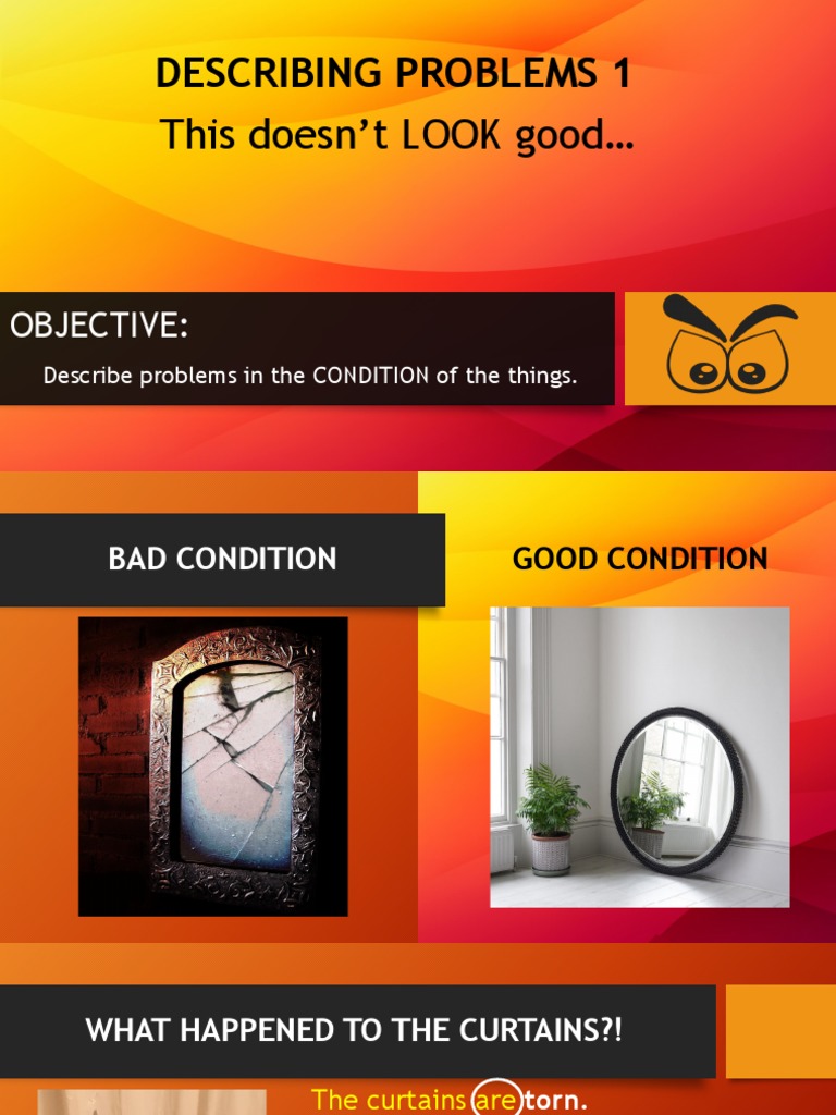 7. The one he’s wearing is torn. 8. And the ceiling is damaged.