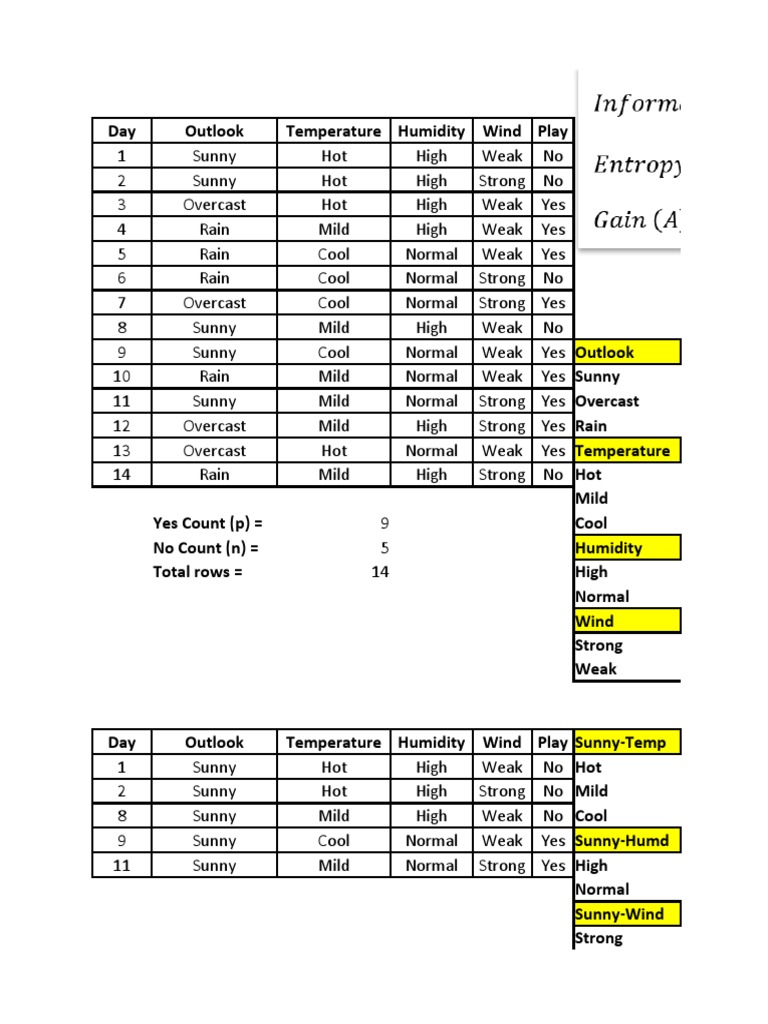 Day Outlook Temperature Humidity Wind Play Sunny-Temp