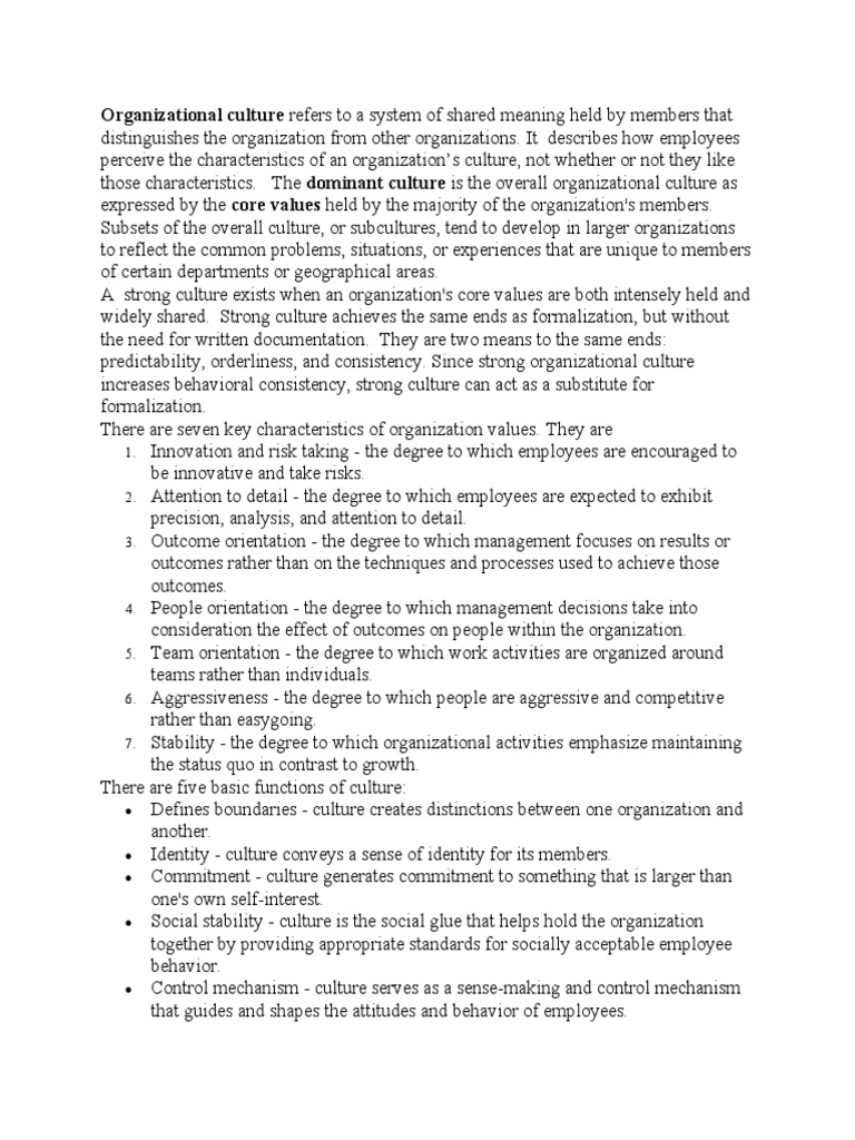 those characteristics. The dominant culture is the overall organizational culture as
