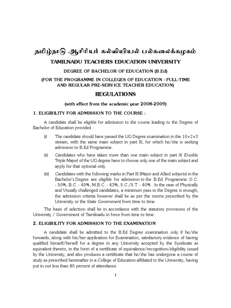 University / Government of Tamilnadu in force from time to time.