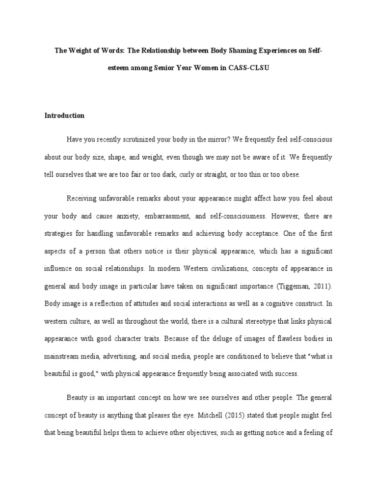 The Weight of Words: The Relationship between Body Shaming Experiences on Self-