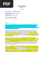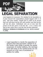 BUGAYONG vs GINEZ FACTS This is an appeal from an order of the Court of First Instance. Benjamin Bugayong, a serviceman of the navy, is married to Leonila Ginez. At first they loved with Benjamins relatives. Benjamin eventually had to return with the U.S. forces. His sister-in-law and other anonymous letters were supposedly being sent to him saying tha his wife has been unfaithful to him. He also claims that he has received a letter from his wife that says she was kissed by another man. Benjamin however, never showed this letter. When he returned he looked for his wife and found her and slept with her for 2 consecutive days as husband and wife. The lower court decided to dismiss the case stating that there was condonation on the part of Benjamin. ISSUE Whether or not there was condonation on the part of Benjamin which may prevent him from seeking legal separation RULING The court affirmed the decision of the trial court. Benjamin by his act of asking Leonila to come and sleeping with her deprives him of an action for legal separation against his wife because he is barred by Article 100 of the Civil Code. He also failed to show the letters which he received and so failed to prove said infidelity sufficiently. The law provides that any cohabitation by the injured spouse with the guilty spouse while he or she truly believes that the spouse has been unfaithful is conclusive evidence of condonation. With this, Benjamin cannot seek legal separation. LAPUZ vs EUFEMIO FACTS This is a petition for review on certiorari of an Order of the Juvenile and Domestic Relations Court of Manila. Carmen Lapuz Sy filed a petition for legal separation against Eufemio S. Eufemio alleging that they are legally married and that her husband eventually abandoned her and is cohabiting with another woman. She asked for legal separation which would cause Eufemios deprivation fo the properties. Eufemio on the other hand, claimed for nullity of marriage saying that the marriage was bigamous. While the case was pending, Carmen died in a vehicular accident and they moved for her replacement with her father in the cases as petitioner. Eufemio moved to deny this replacement stating that the death of the accused caused the abatement of legal separation.