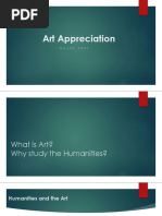 museum of any art exhibit to start art appreciation. An art appreciator appreciate arts that are not just